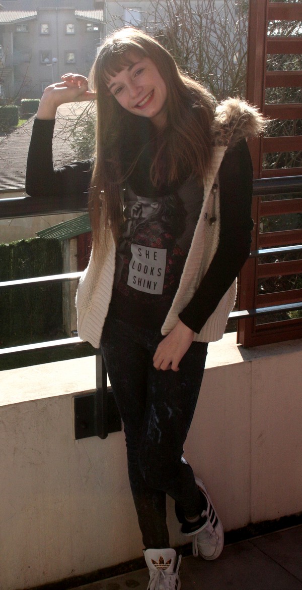 Bon malheureusement, je ne pourrai pas vous linker les différentes pièces de son look, cela fait un moment qu’elle les a achetées, mais au moins je peux vous dire dans quelles boutiques elle les a trouvées !