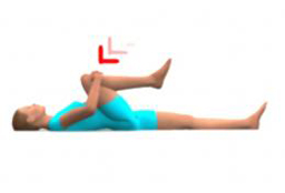 2) Pour étirer votre grand fessier : allongez vous, pliez une jambe et pressez-la contre votre poitrine. Soufflez pendant l’effort.