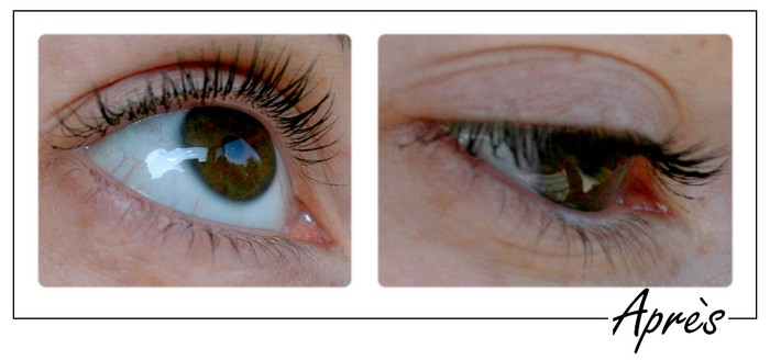 avantAprèsVoilà, il ouvre quand même bien mon regard, la différence est évidente (du moins quand je daigne ouvrir les yeux !). C’est tout ce que je demande à un mascara de toute façon (désolée si mes yeux ont l’air endormis sur les photos, je suis carrément ramollo en ce dimanche ensoleillé).