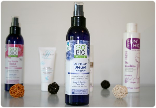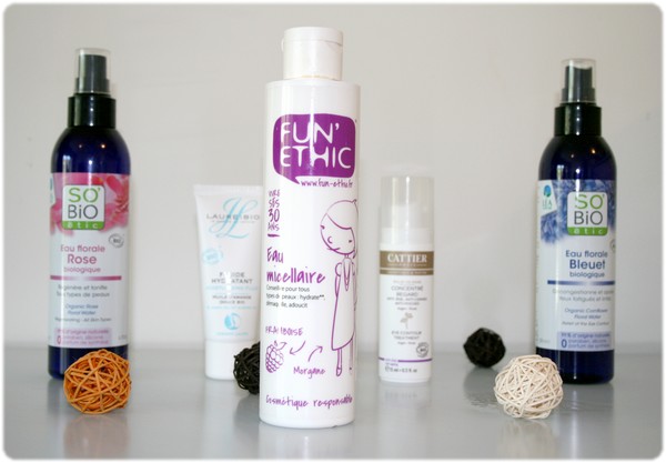 J’adore les eaux florales de rose et de bleuet et j’aime également énormément la lotion micellaire Fun’Ethic !