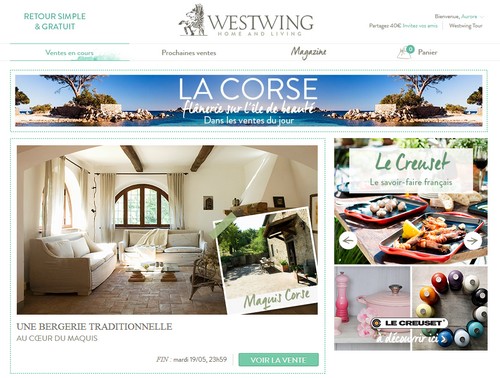 Il s’agit d’un site français de ventes privées de meubles, luminaires, électro-ménagers, vaisselle, linge de maison, décorations en tout genre, proposés à tarifs préférentiels (jusqu’à -70%). Chaque jour sont proposées de nouvelles ventes qui durent de 3 à 5 jours. Le site travaille aussi bien avec des marques connues qu’avec de nouveaux créateurs. L’équipe propose également un webzine afin de nous faire découvrir les nouvelles tendances en matière de décoration d’intérieur. Accessoirement, je trouve le design est très agréable, coloré, qu’il invite au voyage et stimule l’imagination (après chacun ses goûts).