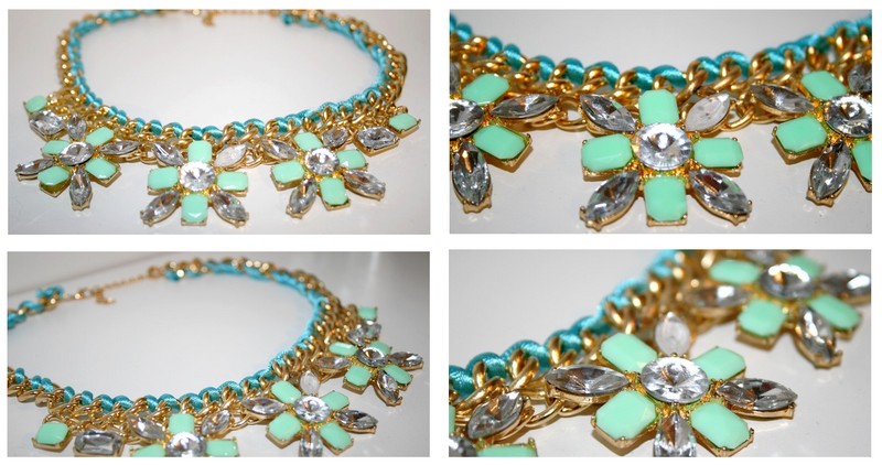 J’ai commandé un Collier Fleur Cristal Vert (11,61 euros). A y regarder de plus près, il manque un pétale à la fleur centrale. On va dire qu’il n’y a pas vraiment de quoi fouetter un chat à ce prix là. Le collier est plutôt joli et parfait pour habiller ou sophistiquer une tenue simple ou un peu plus élaborée.