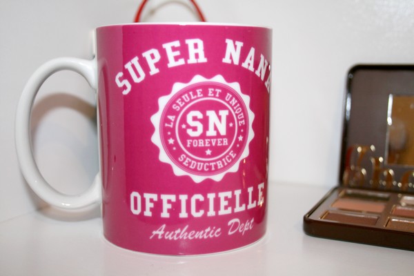 Comme mes beaux-parents pensent que je suis une super nana, ils m’ont également offert un mug girly (le premier que j’ai qui fasse vraiment fille) qui est venu rejoindre celui que mon homme m’a ramené de Budapest.