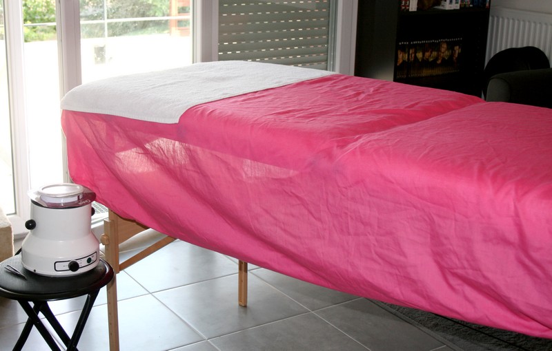 L’avantage c’est que vous n’avez aucun matériel à fournir. Elle apporte ses produits et sa propre table (mon séjour s’est transformé en vrai salon d’esthétique !).