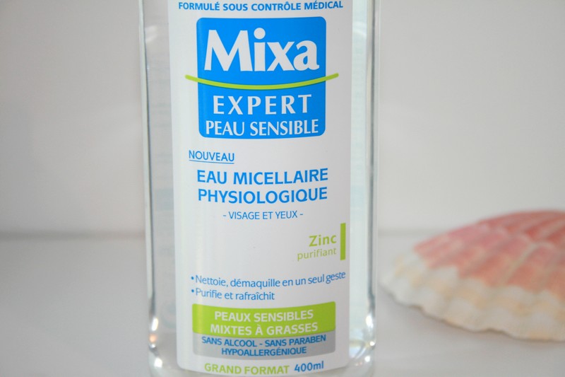 Jusqu’à aujourd’hui j’utilisais l’eau micellaire pour peaux sensibles de Mixa (à cause de mes joues sèches et rougies). Pour information : elle calme les échauffements, atténue les rougeurs et diminue leur apparition dans le temps (est sensée les diminuer serait plus juste dans mon cas).