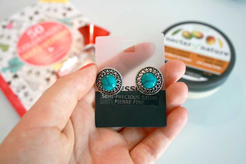 – Une paire de jolies boucles d’oreilles turquoise et argentées (pas autant que celles de Sophie mais sympa quand même pour sortir, la couleur ça fait toujours de l’effet).