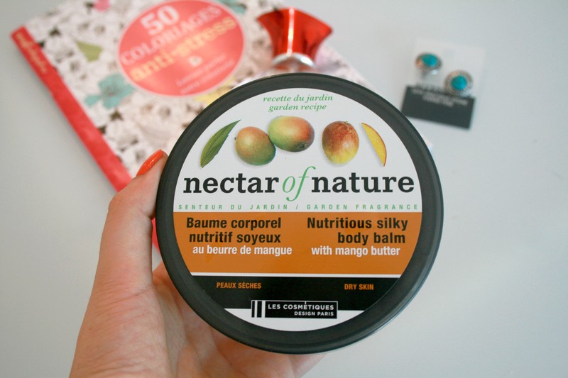 – Un beurre corporel nutritif soyeux au beurre de mangue – Nectar of Nature (pour prendre soin de vos gambettes, son parfum est divin).