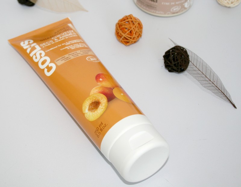 Je sais que dans les premiers temps je vais devoir laver mes cheveux régulièrement avant qu’ils s’adaptent à la composition sans cochonneries du shampooing Propolia. Comme je ne pourrai pas refaire le masque à chaque fois, l’Après Shampooing cheveux secs et abîmés de Coslys est une bonne alternative. Celui-ci m’a été offert par Marine.