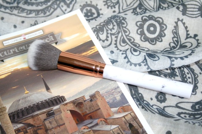 Que dire d’un pinceau si ce n’est que c’est toujours utile. Celui-ci est tout doux et plutôt original avec son manche imitation marbre et son embout rose gold. Je l’utiliserai avec plaisir pour appliquer du blush ou de la poudre libre.