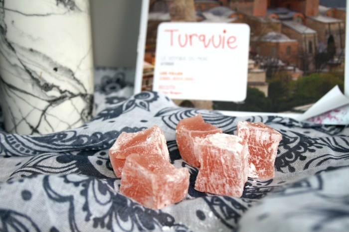 Très chouette initiative les bonbons dans une box. J’en suis friande d’ailleurs, vous savez que je suis une grosse gourmande. Manque de bol, je n’ai pas aimé le goût de ceci qui est très prononcé en rose. Ceci dit, la texture était très intéressante, moelleuse à souhait et ça, j’ai apprécié. Les loukoums sont une confiserie d’origine turque ottomane.