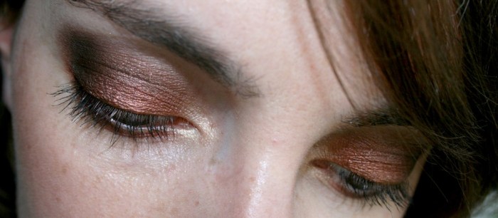 • J’ai appliqué la teinte n°2 au dernier quart de ma paupière mobile pour intensifier le maquillage puis je l’ai également fondu en creux de paupière avec le n°1 pour qu’il n’y ait pas de démarcation.