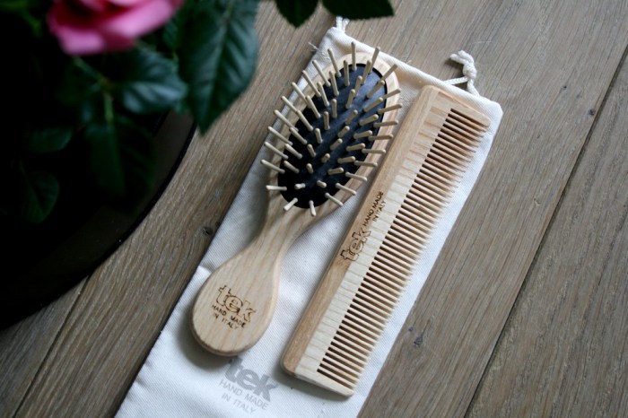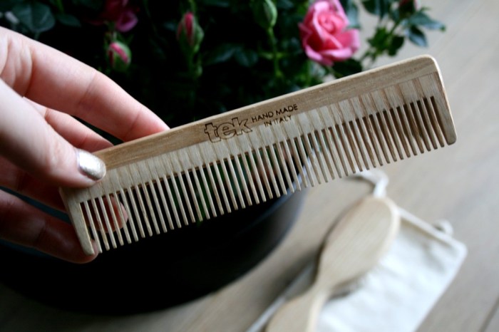 Un article beauté sur le blog, ça faisait longtemps pas vrai ? Aujourd’hui, j’avais envie de vous parler de deux cadeaux que j’ai reçus pour Noël cette année : le petit peigne et la mini-brosse naturels de la marque Tek. Cela faisait un moment que je voulais me mettre à ce type d’accessoires, d’autant que si vous pouviez voir la brosse à cheveux que j’avais jusqu’à maintenant, ce serait franchement la honte pour moi… (genre le manche complètement pété et le truc qui date de Mathusalem, bref !). Tek est une marque qui propose des accessoires faits main en Italie pour le cheveu et pour le corps. Ils utilisent des matières nobles et naturelles telles que le bois et le caoutchouc.