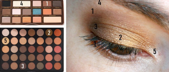 6- Déposez le fard 5 au coin interne pour la touche de lumière.