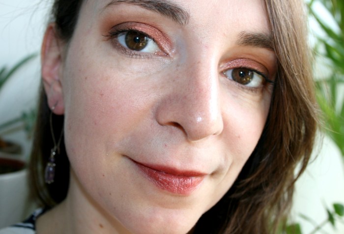 Si on détaille un peu plus, le petit Fuchsia contient notamment de l’Huile d’abricot bio – assouplissante, nourrissante et hydratante, de l’Huile d’olive bio – qui permet la régénération cutanée, de l’Huile de jojoba bio : nourrissante et qui apporte douceur et souplesse et du beurre de karité bio – anti-inflammatoire et régénérant. 93 % du total des ingrédients sont d’origine naturelle. Je le porte davantage quand je veux légèrement vitaminer un makeup. Avec quelque chose de neutre sur les yeux par exemple (cf juste en dessous). Associé avec une petite touche de doré sur les paupières, il est juste parfait !