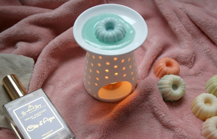 Les fondants en soi sont vraiment trop mignons. On dirait des pâtisseries ! On en mangerait. Et le parfum sérieusement… Une tuerie ! Limite, même sans les allumer, ils parfument facilement un petit espace (les toilettes par exemple #l’astucequitue). Ils ont une durée de diffusion de plus ou moins 24h en fonction du parfum. La quantité de fondant ne diminue par comme les bougies. Lorsqu’il ne sent plus, c’est le moment de le jeter. Pour cela il suffit de le fondre et de le vider dans la poubelle.