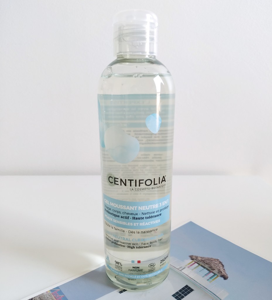 Centifolia est une marque de soins cosmétiques certifiés bio et naturels, fondatrice du concept de la cosméto-botanique, qui se base sur l’observation scientifique des plantes et de leurs bienfaits (je résume très vite). On va s’intéresser ici à une gamme pour les peaux sensibles et réactives, formulée à partir de la synergie d’un prébiotique et d’un polysaccharide. Elle comprend 6 produits : le baume relipidant neutre, l’eau micellaire neutre, l’huile lavante relipidante neutre, le gel moussant entre 3 en 1, la crème hydratante neutre et le soin hygiène intime neutre. Je vous parlerai de ces quatre derniers.
